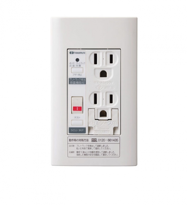 内蔵センサーで震度5強以上の地震を感知すると接続された家電だけを即時に遮断するコンセントである.当社の「enステーション」と連係させると2段階の遮断(即時遮断と3分後遮断)が可能になる.