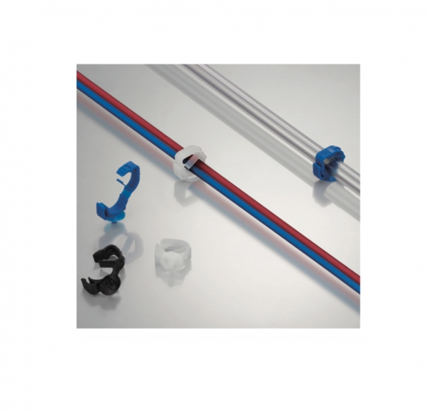 固定したハーネスの取外しができ,幅広い板厚に対応するホルダークリップである. 〔特長〕①マウント部はもみの木形状で,幅広い範囲の板厚に対応する.②クリップ部は開閉できるデザインのため,メンテナンス時にハーネスを動かすこと,取り外すことも可能.③ドーム型の支えによりパネルに取付けた後でも安定した固定ができる. 電話(03)5790-3128