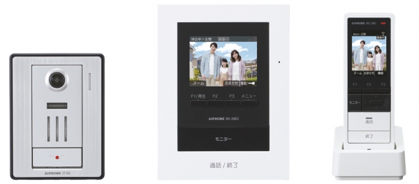 対応メッセージを選ぶことができるテレビドアホンである. 〔特長〕①在宅時,3種類のメッセージを選択し,不要な対応を減らすことができる.②モニター付親機とモニター付ワイヤレス子機はスリムでスマートな外観.③自動録画・録音機能により,来訪者の映像と用件が確認できる.④住宅用火災警報器音声鳴動. 電話0120-141-092