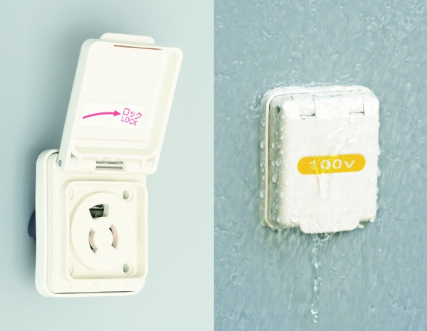 機械器具や盤に最小寸法で直接取付けることができる電源を供給するためのコンパクトな防水器具である. 〔特長〕①カバー全閉時に全方向からの水の飛沫に対し保護しているIP44仕様.②本体差込口,開閉カバーともに耐熱性・耐トラッキング性などに優れる難燃仕様UL94V-0のナイロン樹脂を採用している.③カバーは全開位置と中間位置で静止可能. 電話(03)3720-9621