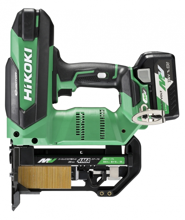 独自のリチウムイオン電池「マルチボルト蓄電池」を搭載したコードレス式フロア用タッカ. 〔特長〕①コードレスなのでコンプレッサとホースが不要となり,取り回し性に優れ,作業現場をきれいに保つ.②反動低減機構と強力なスプリングを採用することで,打ち込み力がパワフルである.③巾木で隠れる隅打ち5mmが可能で,フロアの張り始め,張り終いもしっかり打てる. 電話(03)5783-0601