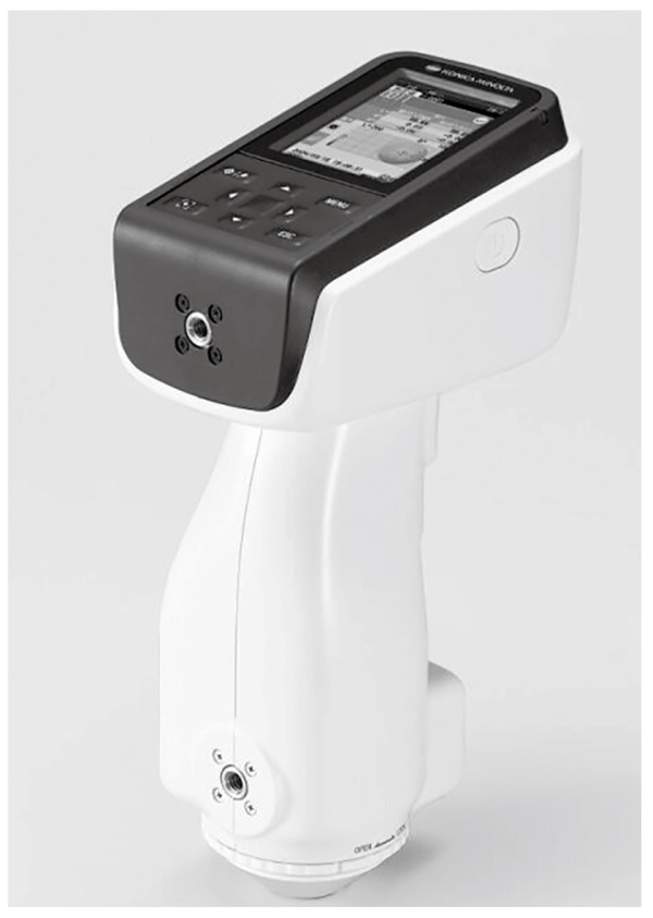 縦型・軽量で場所を選ばず高精度な測定ができるポータブル分光測色計である. 〔特長〕①片手での作業や小物・曲面形状のサンプルの測定など,あらゆる場面で使いやすいデザイン.②電子ビューファインダーで容易に測定位置をあわせることができる.③測定精度向上を実現した.③充電とゼロ校正ボックスの機能を兼ね備えたクレードル.④波長補正機能付き. 電話 0120-610577
