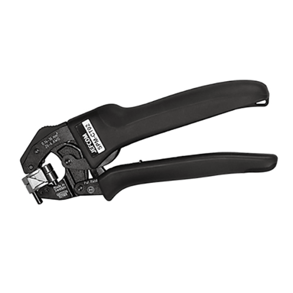 フェルール端子用小型圧着工具である.〔特長〕①狭い場所でも圧着ができる回転ダイス採用.②フェルール端子0.14~16mm²まで圧着可能.③質量304g,サイズ25×182×68mmの軽量,コンパクト.④握りやすいグリップ形状.⑤落下防止ストラップ穴付き. フェルール端子は,電線のバラケを防止し,電気接続の品質を安定させる欧州式棒端子.