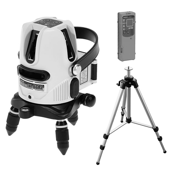 〔特長〕①レーザー照度切替(省エネ・通常・高輝度).②3電源対応(付属充電池・付属ACアダプタ・別売モバイルバッテリー).③垂直(たちライン),水平(よこライン)・両縦(4方向たちライン90°)・鉛直(鉛直クロスライン・地墨ポイント).③屋外使用可能.④三脚,受光器,収納ケース付き.