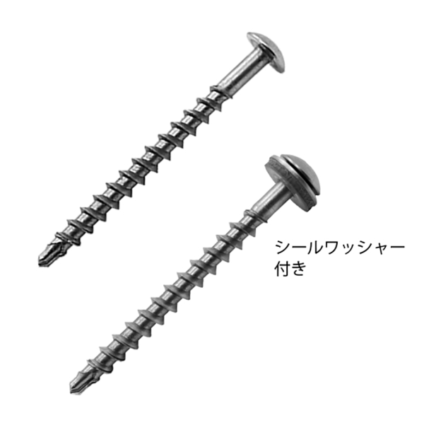 水切りなどの薄鋼板を下穴不要でALCパネルに固定可能できるアンカーである. 〔特長〕①刃先付きで薄鋼板(板厚0.8mm以下)への下穴不要.②カムアウトしにくい十字穴(QuaStix®を採用).③シールワッシャー付きで防水性に優れたALS-WSタイプ.④シールワッシャーなしとシールワッシャー付きの2種.