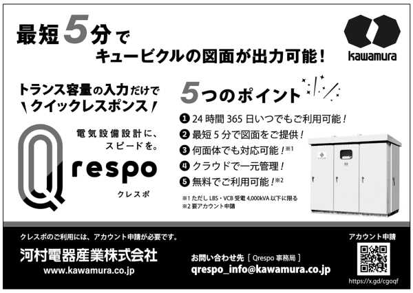 トランス容量の入力だけでクイックレスポンス 電気設備設計に、スピードを。 「Qrespo」クレスポ。