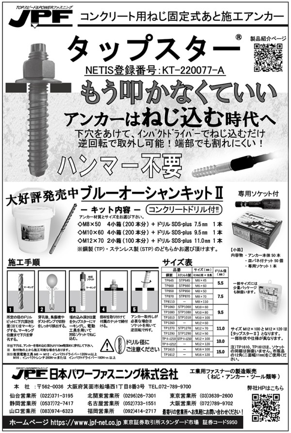 もう叩かなくていい アンカーはねじ込む時代へ 下穴をあけて、インパクトドライバーでねじ込むだけ 逆回転で取外し可能!端部でも割れにくい!