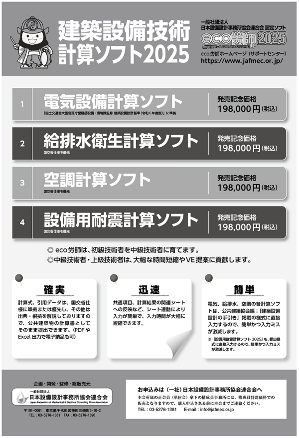 電気設備計算ソフト 給排水衛生計算ソフト 空調計算ソフト 設備用耐震計算ソフト