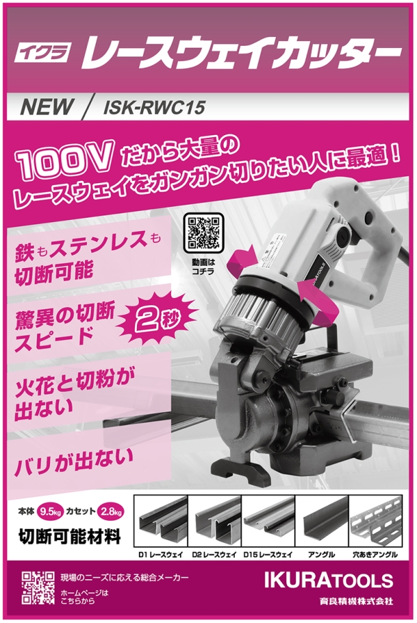 NEW ISK-RWC15 100Vだから大量のレースウェイをガンガン切りたい人に最適! 鉄もステンレスも切断可能 脅威の切断スピード 火花と切粉が出ない バリが出ない