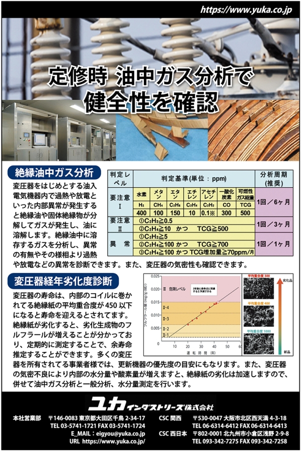 絶縁油中ガス分析 変圧器経年劣化度診断