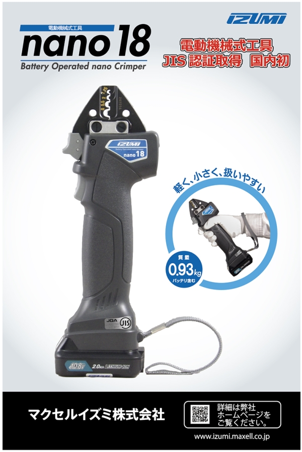 電動機械工具 JIS認定取得 国内初 軽く、小さく、扱いやすい 質量0.93kg(バッテリ含む)